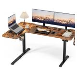 59 Inch L Shaped Standing Desk Adjustable Height, Electric Corner Standing Desk, Sit Stand Computer Table with Reversiable Splice Board, Rustic Brown