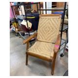 Mid-Century Modern Wood and Woven Rope Lounge Chai |