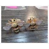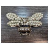 Gold-Tone Bee Brooch with Faux Pearls and Rhinesto |