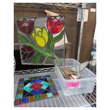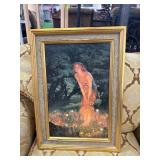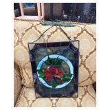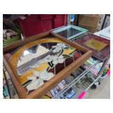 Painted Glass Mirror With Wooden Frame and 2 Stain |