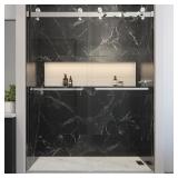 - 【Adjustable Width】 The shower door's bar can be cut to fit spaces between 56.5" to 59" wide, making it versatile and compatible with a range of shower areas. Walk-in width: 24.875" to 26.625" for ease of entry. The doors are thoughtfully designed with minimal overlap of 1.25" to 4.25", providing a sleek and seamless appearance.