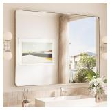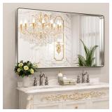 TokeShimi 48x36 Brushed Nickel Bathroom Wall Mirror Vanity Metal Frame Round Corner Rectangular for Home Decor Living Room Entryway