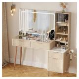 - Meet Your Storage Needs: Featuring 3 storage compartment, 3 drawers, and storage Cabinet. The vanity offers plenty of space to organize all your makeup essentials. Combining practicality and elegance ensures everything stays tidy and within reach