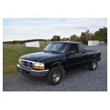 1999 Ford Ranger XLT 4x2 Extended Cab Pickup Truck – 3.0L V6 Engine w/198,293 Original Miles – 5spd. Manual Transmission – w/Power Windows, Power Door Locks, Power Mirrors, A/C, Tilt Steering Wheel, AM/FM/CD, Rear Sliding Window – 60/40 Bench Seat, Rear Jumper Seats – Slide In Bed Liner – Keyless Entry– Black Exterior – Gray Cloth Interior