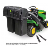 - The John Deere Twin Bagger for the 100 Series Lawn Mowers with a 42 in. deck requires no tools for set up and can be completed in minutes. 2-durable, loose-knit polyester bags provide efficient bagging performance and clean operation. The lower chute provides smooth airflow to reduce chance of plugging. This bagger is easy to empty and offers a generous, 6.5-bu (229-L) capacity. Simple to remove, the disassembled bagger is compact for convenient storage. Lawn Mower sold separately.