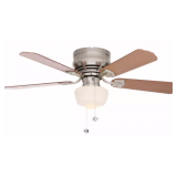 - The fan offers understated styling with its brushed nickel finish and white globe shade. It has 5 blades are reversible so you can customize the look to complement your decor.