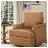 (143) LUE BONA Modern Swivel Accent Chair Leather Armchair for Living Room - 30" W x 32" D x 36" H - Whiskey Brown