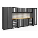 *INCOMPLETE* NewAge Products Garage Storage Cabinets Bold Series Gray Include Multi Use lockers, Rolling Tool, Base & Wall Cabinets with Lockable Doors, LED Lights, Slatwall Backsplash, Bamboo Worktop - 3 Boxes