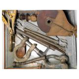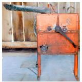 - Ski Resort 16 Person Wooden Tobaggon - New Idea Hand-Crank Corn Sheller - Vintage Easy Twin-Tub Washstand w/ Metal Frame and Casters - Red Metal Pull Wagon w/ Steel Wheels - Justrite Red Steel Oily Waste Can w/ 21-Gallon Capacity - Cast Iron Parlor Stove w/ Ornate Detailing and Decorative Finial - Craftsman GT 5000 Riding Mower Tractor w/ 54-Inch HD Mower Deck and Kohler 25HP Engine - Agri-Fab 42-Inch Heavyweights Lawn Sweeper w/ Tow Hitch - SpanSet Industrial Lifting Slings, one tagged HB 6000, 3 m, 6 Tons - Steel Engine Stand w/ Rolling Base and Adjustable Arms - American Bell Foundry Cast Iron and Steel Bell from Northville, Michigan - Craftsman 9.0 HP 26-inch Snow Blower w/ Tecumseh Engine - Large Two-Person Crosscut Saw Blade - Cotterman Rolling Industrial Metal Ladder w/ Safety Rails - Hand-Pulled Cultivator w/ Wooden Handles and Metal Frame - Metal and Wire Mesh Fly Trap w/ Hinged Door and Handle - Landers Improved Brass Spring Balance Scale - Vintage Hand Tools Including Augers, Mallet, and Oil Can - Craftsman 10-Inch Compound Miter Saw, 120V, 15A - Heavy Metal Industrial Construction Work Bench - Antique Primitive Apple Butter Large Copper Kettle Vessel - Sears, Roebuck and Co. USA Floor Lamp w/ Brass and Pink Glass Accents - Black & Decker Bench Grinder, Craftsman Circular Saw, Milk Crate and Wood Crate Bench - Vinyl Records Featuring Guy Lombardo and Others in Albums - Antique Feb 22, 1910 Wagner Ware Sidney O #8 Cast Iron Waffle Maker w/ Base - Wood and Aluminum Step Ladder Pair, Saf-Mate and Unbranded - Heavy-Duty Steel Wire Ropes w/ Swaged Sleeves and Shackle - 46-Inch Blade Attachment for Lawn Tractor, Unused - Galvanized Steel Pipes and Fittings - Aluminum Ladder Jacks and Roof Jacks Grouping - Large Plastic Tote w/ Assorted PVC Pipe Fittings - Collectible Store Scale with Dial and Hanging Galvanized Basket - Antique Myers Cast Iron Hand Water Pump by F.E. Myers & Bro Co - Coffing Hoist Co. Manual Chain Hoist, 1.5 Ton Capacity - Grouping of Snow Tire Chains and Tow Chains - Red Metal Tool Chest w/ Multiple Drawers and Flip-Top Lid - Wooden Workbench Table - Work Table w/ Storage and Vise - Enterprise MFG Co. Cast Iron Sausage Stuffer/Press, Philadelphia - Metal Filing Cabinet w/ Faux Woodgrain Finish - Meat Grinder w/ Winsmith Speed Reducer and Motor - Gas-Powered Water Trash Pump w/ Dixon and Ward Attachments - Craftsman 2900 PSI 2.3 GPM Gas Pressure Washer w/ 7.0 HP OHV Engine - Grouping of Two Step Ladders - Igloo and Rubbermaid 5-Gallon Beverage Coolers - Stihl 026 Gas-Powered Chainsaw w/ Bar and Chain - Stanley Goldblatt Aluminum Bull Float w/ Poles - Large Grouping of Vintage Farm and Garden Tools - Four Galvanized and Metal Buckets In Various Sizes - Industrial Electric Motors by Dunlap and Leeson - Irrigation Sprayer w/ Adjustable Nozzle and Frame Support - Sears Craftsman 10 Inch Wet Grinder - 3 Multi-Compartment Plastic Storage Organizers - Measuring Tools w/ Levels, Squares, and Rulers - S-K Tools Metal Toolbox w/ Assorted Tools by Sherman-Klove Co. - Large Grouping of Masonry Tools - Automotive Hand Tools and Sockets - Evercraft 44-Piece 3/8-Inch Drive SAE & Metric Standard and Deep Impact Socket Set - Craftsman Chisel and Punch Set, 19 Pieces, Various Sizes - Metalworking Punches, Chisels, and Tools - Fostoria DKL-QH Portable Halogen Work Light w/ Tripod - 8 Cold Chisels and Scrapers Including Stanley, and Dasco Pro - Hand Tools and Hardware Components - Stanley Toolbox w/ Assorted Tools and Accessories - Vintage Tools, Including Craftsman Plane and Assorted Monkey Wrenches - Snap-on Offset Box Wrenches, 7 Pieces - 14 Craftsman Combination Wrenches in Assorted Sizes - Grouping of Caulking Guns, Tape Measures, and Chalk Lines - Wrenches and Hand Tools Grouping - Grouping of Hand Tools Including Wrenches, Pliers, and Vise-Grips - Proto Professional Tools Open and Box-End Wrench Set w/ Red Vinyl Case - Vintage Hand Tools w/ Wooden and Metal Handles - Wooden Sideboard w/ Two Drawers and Two Doors - Metal Chains, Various Lengths and Conditions - Handling Equipment: Vintage Dolly, Ropes, Straps, and Wheelbarrow Including Spare Tire - General Electric No Frost Refrigerator w/ Energy Saver Controls - Milwaukee Right Angle Drill and Skil Saw in Cases - Vintage Iron Logging Wedges and Hammer Head Tools in Metal Tray - Columbia International Air 307 and Husky Multi-Purpose Spray Guns w/ Cups - Craftsman Wrenches and Ratchets, Various Sizes - Electrical and Hardware Components Including Timer and Metal Strapping - Snap-on Metal Tool Box w/ Assorted Saw Blades - Metal Rolling Storage Cabinet on Casters w/ Internal Drawers - Hand Tools Including Hammers, Files, and Rasps - Hand Tools Including Snip, Pliers, Saw, Wrenches, and Screwdrivers - Vintage Open-End and Box Wrenches - Large Collection of Screwdrivers - Vintage Hand Tools and Hardware Components - Hand Tools Including Pliers, Screwdrivers, and Wrenches - Rusted Hex Keys / Allen Wrenches Collection - Hand Tools Including Screwdrivers, Wrenches, and Clips - Craftsman 1-Inch Auto-Scroller Saw and 3-5/8-Inch Planer Power Tools - Hand Tools Including Hammers, Scrapers, and Pliers - Tools and Accessories, Including Staplers, Sockets, Wrenches, and Test Ball Plugs - Actron Model 204 Timing Light, Craftsman Driver Light Set and Sears Voltmeter - Metal Toolboxes and Storage Containers - Grouping of Sad Irons w/ Graniteware Pot and Metal Dustpan - Tools Including Shears, Oil Filter Wrenches, Ahl, and Sharpening Stones - DeWalt and Craftsman Drills w/ Carrying Case - Hardware and Industrial Components, Including Pullies, Bolts, and Shackles - Two Cyclone Seed Sower Devices - Wooden Extension Ladder - Grouping of Furniture Pieces - Grouping of Cookbooks, Fiction, Picture Frames, CD Rack and Plate Stands - Tufted Green Loveseat w/ Wooden Accents and Matching Pillows - Two Sewing Machines, Singer and Domestic - Three Framed Art Prints - Decorative Tin Containing an Assortment of Buttons - CorningWare 'Le Romarin' Bakeware Set w