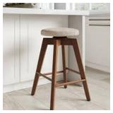 Nathan James Amalia 26 in. Natural Wheat Brown Backless Counter Height 360 Swivel Upholstered Seat Solid Wood Kitchen Bar Stool