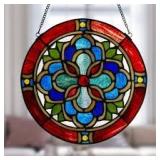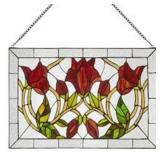 Red Floral Vines Traditional Multicolored Stained Glass Window Panel