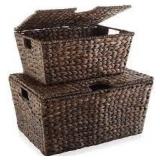 Casafield Brown Espresso 21.25 in. x 24.75 in. Wicker Hyacinth Decorative Baskets Storage Bins (Medium/Large)