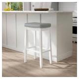 Linon Home Decor Concord 32.25 in. White and Light Gray Backless Wood Bar Stool with Faux Leather Seat