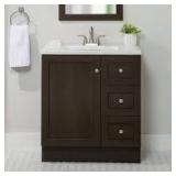 Hampton Bay Shaker 30 in. W x 12 in. D x 15 in. H Assembled Wall Bridge Kitchen Cabinet in Satin White without Shelf