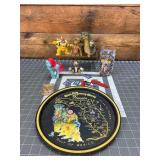 Silver Tray with Encased Moth & Engraved Glass, Sterling Coasters |