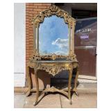 19th Century Marble Top Demilune Hall Table With Ornate Carving and Gold Gilt |