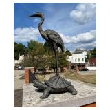28" Cast Bronze Statue of Crane Standing on Turtle |