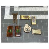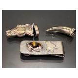 Sterling Money Clip, Horn Unmarked Possibly Silver, Brass Horsehead Match Strike (money clip weights 41.99g) |
