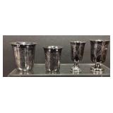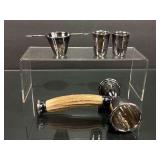 Bar Ware, Sterling Silver Jigger, 2 Russian Shot Glasses Marked 84, Unmarked Pour Over |