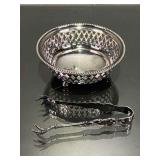 Gorham Sterling Nut Bowl & Sterling Tongs (44.64g combined) |