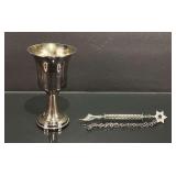 Judaica Sterling Silver Yad & Yiddish Cup w/ Star of David (cup is not marked, consignor believes coin Silver) |