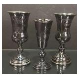 3 Engraved Cordial Cups, 2 Marked 84, Other with Undeciphered Hallmark |