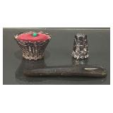 Sterling Thimble & Sewing Needle. Pin Cushion Possibly Marked .925 on Bottom |