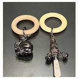 2 Baby Rattles w/ Bells Has English Silver Hallmarks (I do not see any marks on the cat) |