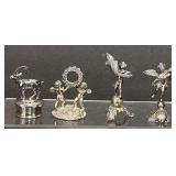 Boy With Fish, Angel & Ram Bottle Stopper are all Marked .800 (4th item is a table placard card holder. I do not see any markings)(68.39g combined of 3 marked .800) |