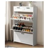 Ktaxon Wooden Shoe Cabinet with 3 Flip Drawers & 2 Storage Drawers for Hallway Bedroom Entryway, White