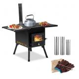Ktaxon Camp Wood Stove Wood Burning Stoves Portable with Chimney Pipes Camping Stove for Outdoor (Black)