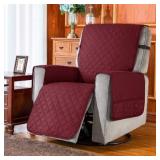 Quilted Recliner Chair Cover with Elastic Adjustable Strap, Wine