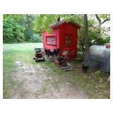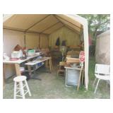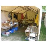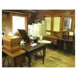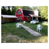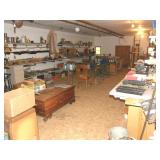 <Don't think of this as a regular estate sale, but rather an adventure. After skirting around corn fields and traveling through beautiful country side you will find yourself in a wooded area with tents, a log cabin, a two story barn, and a charming home. And everything is full of collectibles and unusual items. Some of the highlights of what you will find are:Bears in the Woods dining set, Chrysler Sebring convertible, the largest pig collection ever, tractor, trailer, pig roaster, canoe, many picnic tables, white wrought iron table and chair sets, a large amount of items needed for a catering business, a museum consisting of 22 sewing machines in the log cabin(all of which are for sale, a two story barn full of tools, yards of assorted fabrics, sewing notions, quilts and quilting supplies, a large assortment of craft materials, embroidery in all forms including unusual framed embroidery on veneer, kitchen range that looks old but has all modern technology(gas), multiple instruments consisting of many dulcimers, banjo, several harmonicas,n goat huff castanets, and various other "folk music" items, also including a nice collection of music books,several(4 or 5) AE1 Cannon cameras with an assortment of lenses. This is a very large sale. There is so much we are going to let the pictures do the talkin |