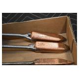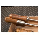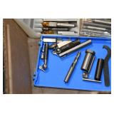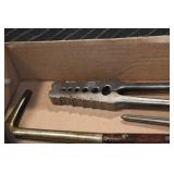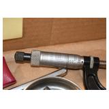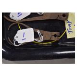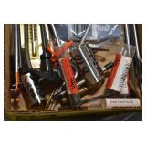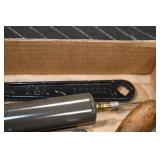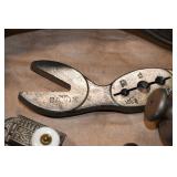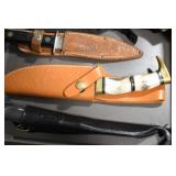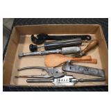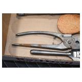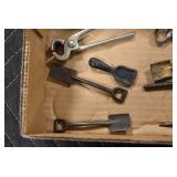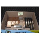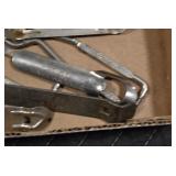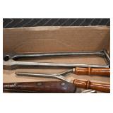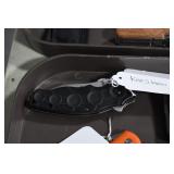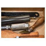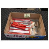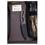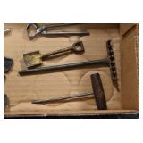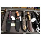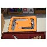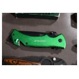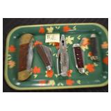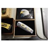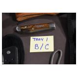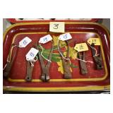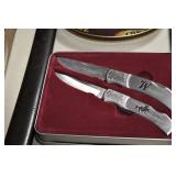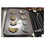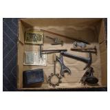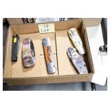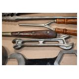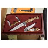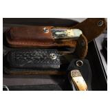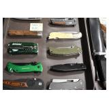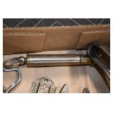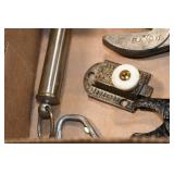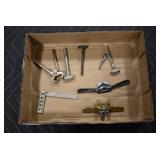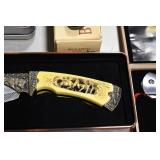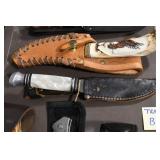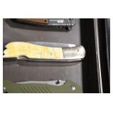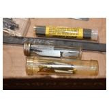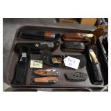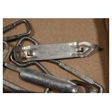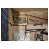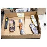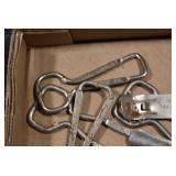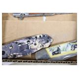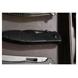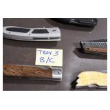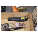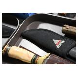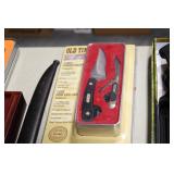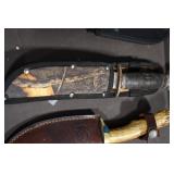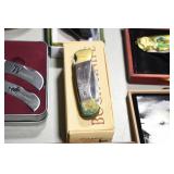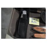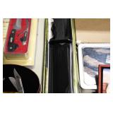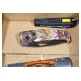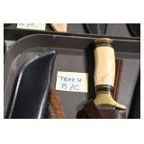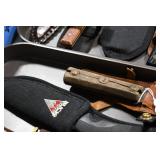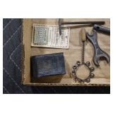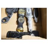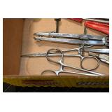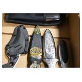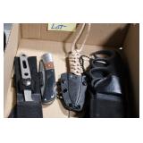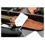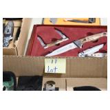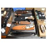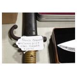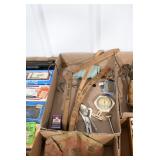 Military and Sporting Related: Military Pins, Medals, and Patches, Military Uniform Buttons, War Rations, Military Tools, Military First Aid Kits, U.S. Survival Kit w/Side A and B Unopened, Military Canteens w/Canvas Covers, Swords and Bayonets, Pennsylvania Boundary, Hunting, Fishing, and Boating Licenses, Deer Antlers, Animal Traps, Large Amount of Folding, Pen, and Sheath Knives, Knife Sets, Bullet Molds, and Other