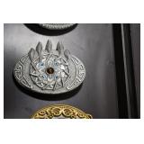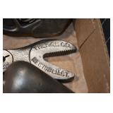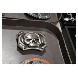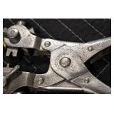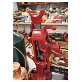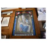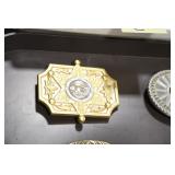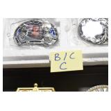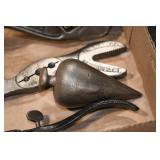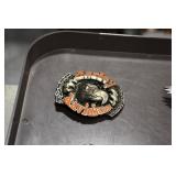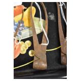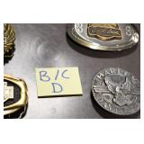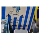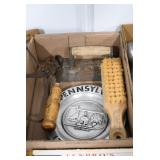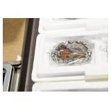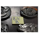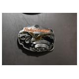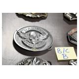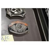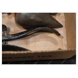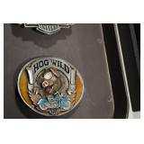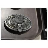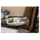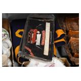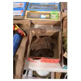 Antiques and Collectibles: (25) Harley Davidson Belt Buckles, Harley Davidson Jewelry, Large Amount of Political Pinback Buttons, (30) Lots of Various Comic Books, Pottery Pitchers, Cast Kettle, Cast Fry Pans, Cast Griddle, Cast Dog Door Stop, Longaberger Baskets and Pottery, Carved Wooden Swan with Folding Wings, 1948 Econolite Corp Merry-Go-Round Carousel Circus Motion Light Lamp, Tinware, Paper Mache Handbag, Paper Mache High Heel, Paper Mache Tea Set, Hat Pins, Musical Folk Art Mardi Gras Noise Maker, Lanterns, Marionette Puppet of Princess Alicia, Marionette Puppet of Prince Charm, Erector Set, Baby Carriages, Butchering Ladles and Forks, Wooden Advertising Boxes, Advertising Tins, Vintage Advertising Signs, Vintage Harmonicas, Coin Tokens, Old Photographs, Vintage Real Fur Teddy Bear, Vintage Eyeglasses, Lions Club Pins and Medals, Porcelain Face Dolls, German Steins, Wild Turkey Decanters, Ducks Unlimited Decanters, Budweiser Mugs, Orante Wooden Wall Hanging and Mantle Clocks, Vintage Animal Figurines, Cast Horse Drawn Carriages, Civilian Dime Store Figures, Large Amount of Vintage/Collectible Tools, Framed Prints and Pictures, and Other