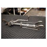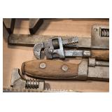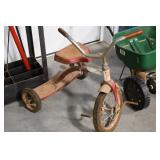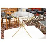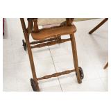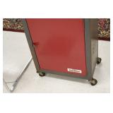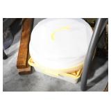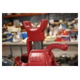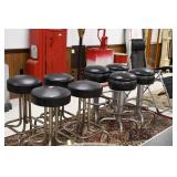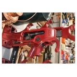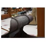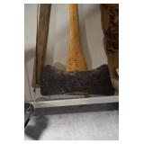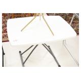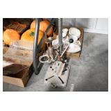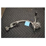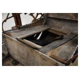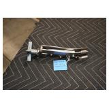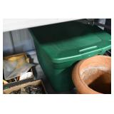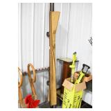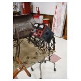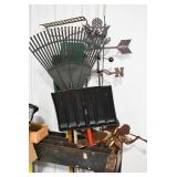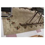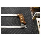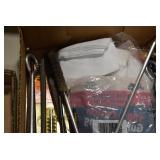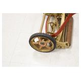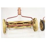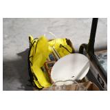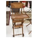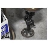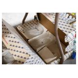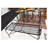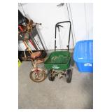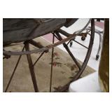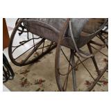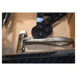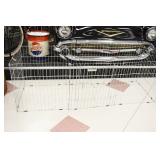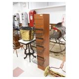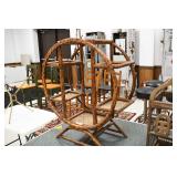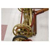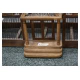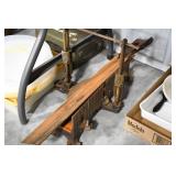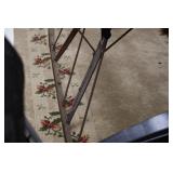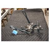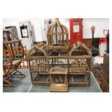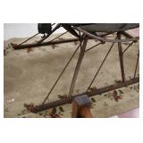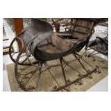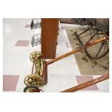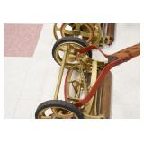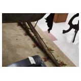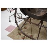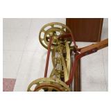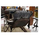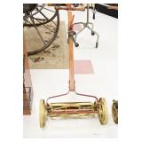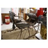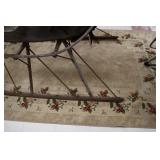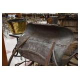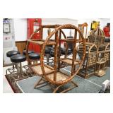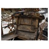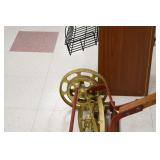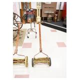 Furniture: Large Amount of Bar Stools, Rod Iron Metal Bench, Bamboo Round Shelf On Legs, Dome Building Bird Cage, Metal Tool Locker, Wooden Highchair/Stroller, Large Brass Bucket, (2) Resorted Lawn Reel Mowers, Wooden Sleigh (As-Is), Miniature Victorian Grandmothers Clock, Lighted Softwood Curio Cabinet, New Hitch Rack In Box, Assorted Floor Rugs, Various Stands and Chairs, and Other