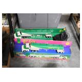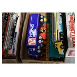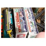 Collectible Toys and Trains: Ertl John Deere Baler, Ertl John Deere Forage Wagon, Ertl John Deere Hydra Push Spreader, Ertl John Deere Plow, Ertl John Deere Corn Plater, Ertl John Deere 5020 Tractor, Ertl John Deere Backhoe Loader, Tudor Tru-Action Electric Football Game, Toy Truck Banks, Toy Truck Collector Tractor Trailers, Winross Trucks, NASCAR Collectibles, Vintage Tin Toys, Large Amount of Hot Wheels, Large Amount of Train Engines, Tenders, Cars, and Layout Accessories, and Other