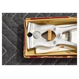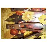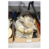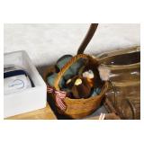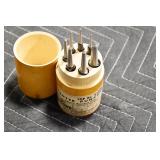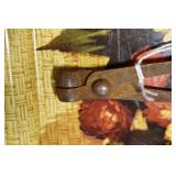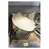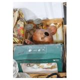 Antiques and Collectibles: Large Amount of Pottery Crocks and Jugs, Pottery Pitchers, Pottery Bowls, Polish Pottery, (25) Longaberger Baskets of Various Sizes and Styles, (8) Ornately Carved Wooden Canes, (13) Lots of Various Glass and Other Thimbles, (19) Wildlife Belt Buckles, (17) African and Other Ladies Purses, (15) Lots of Vintage/Collectible Hats, Guitar in Case, Silver Plated Items, African Coasters, Wildlife Figures, Lazy Fish Wine Bottle Opener, Brass Elephant Place Card Holders, Large Amount of African/Safari Related Collectibles, Sterling Items, Nesting Baskets, Research Books, Raikes Original Bears, Jim Shore Figures, Vintage Cameras, Vintage Scales, Kodak Vest Pocket Folding Camera, Copper and Brass Buckets, Copper and Brass Items, Woodware, Political Pinback Buttons, Cast Sheep Bank, Large Amount of Stamps, Large Amount of Vintage/Collectible Tools, Wood Planes, Hunting Boots and Shoes, Tin Advertising Signs, Framed Prints and Pictures, Framed Mirrors, and Other