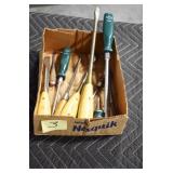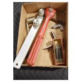 Military and Sporting Related: German Military Metal Canteens, Daisy BB Gun, Miniature Guns, (16) Bullet Molds, Large Amount of Folding, Pen, and Sheath Knives, Knife Sets, and Other