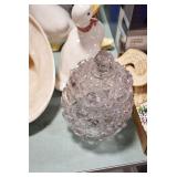 Antique Glassware: (7) Various Glass Cookie Jars, Fiesta Dinnerware, Heritage Village Collection Glass Holiday Figures, Vintage Glass Bottles, Glass Cola-Cola Bottles, Gorham Glass Bowl, Carnival Glass, Painted Wine Glasses, Blown Art Glass Dog, Murano Art Glass Herron, (6) Murano Art Glass Clowns, Murano Art Glass Pheasant, Tiffany Lamp, Lenox Glass, Glass Baskets, Chicken, Duck, and Goose On Nests, and Other