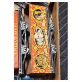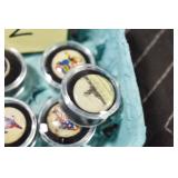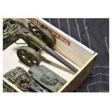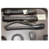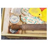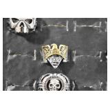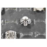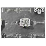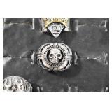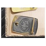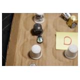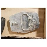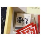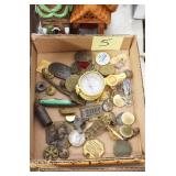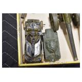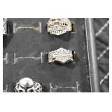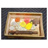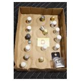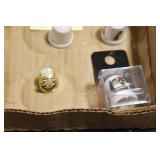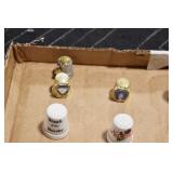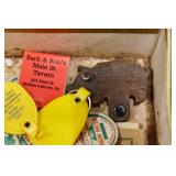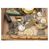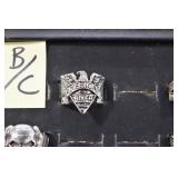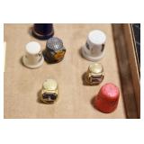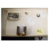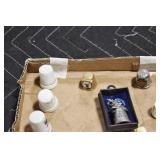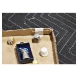Antiques and Collectibles: Sterling Rings, Large Amount of Harley Davidson Jewelry Including: Necklaces, Rings, Bracelets, and Other, Ladies Wrist Watches, (8) Shore Birds, (4) Try Lot of Various Thimbles, Large Amount of Vintage/Collectible Tools, Large Amount of Stamps and Stamp Albums, Large Amount of Belt Buckles and Belts w/Buckles, Large Amount of Vintage Childs Books, Cast Fry Pans, Cast Animals, Lighters, Advertising Items, Pocket Book Marbles Game, Fire Department Ribbons, Quaker Oats Company Grain Bag, Marbles, Brass Bells, Political Buttons, Cow Figures, Old Photographs, Lady Postcards, Vintage Holiday Cards, Vintage Wooden Boxes, Tinware, Puma Wooden Display Case, Copper and Brass Items, Poker Chips, Miniature Singer Sewing Machine, Vintage Eyeglasses, Sheriff Badges, Salt and Pepper Shakers, Vintage Christmas Ornaments, Large Amount of Holiday Decorations, Vintage Plastic Animals, Vintage Scales, Framed Prints and Pictures and Other