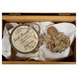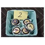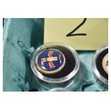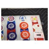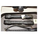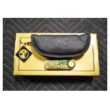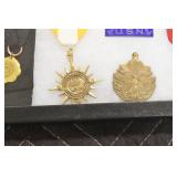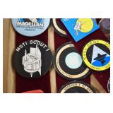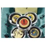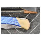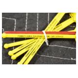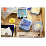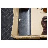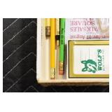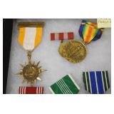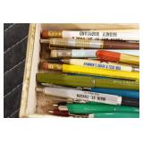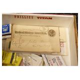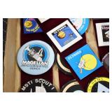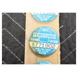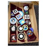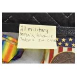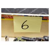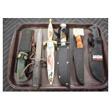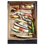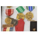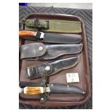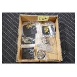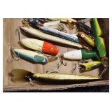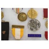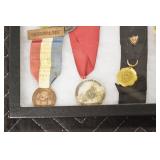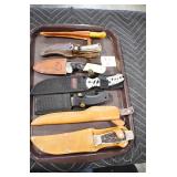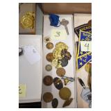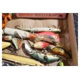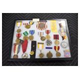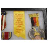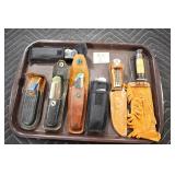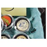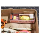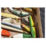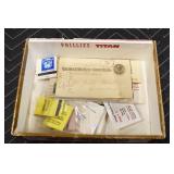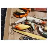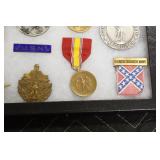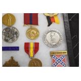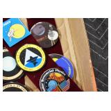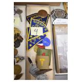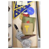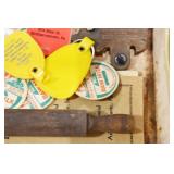 Military, Sporting, and Fishing Related: Military Medals, Patches, and Ribbons, Military Buttons, Cut Mortar Tube, Winchester Super X Shotgun Shells in Anniversary Tins, Ammunition, Assorted Shotgun Shells, Sealed Remington 22 Caliber Mugs, Hunting and Sporting Clothing, Research Books, Tactical Accessories, Olin Alert/Locate Marine Signal Kit, Game Calls, Large Amount of Folding, Pen, and Sheath Knives, Pennsylvania Fishing Licenses, Fishing Lures, Steelon Leaders Display, and Other