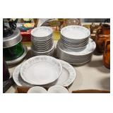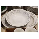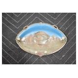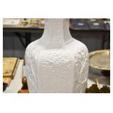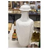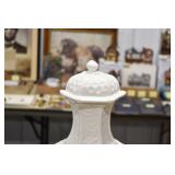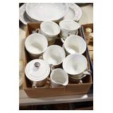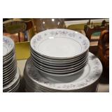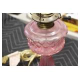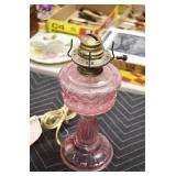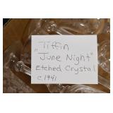 Antique Glassware: Jack in the Pulpit Bud Vase, Tiffin “June Night” Etched Crystal, Oil Lamps, Milk Glass, Large China Set, Ranger Joe Mug, Blue Glass, and Other