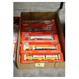 Collectible Toys and Trains: Tin Toys, Diecast Toy Cars and Trucks, Hess Trucks, Tonka Toys, Toy Truck Banks, Toy Tractor Trailers, Military Toys, Antique Toy Cars, Winross Trucks, Model Airplanes, Matchbox Cars, Buddy L. Toy Truck, Miniature Toys, Toy Figures, Large Amount of Train Engines, Tenders, Cars, and Layout Accessories, and Other