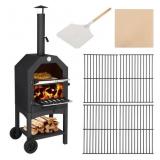 Outdoor Pizza Oven 14 Inch Wood Fired Pizza Oven Patio Pizza Maker w/ Pizza Stone, Pizza Peel, Grill Rack