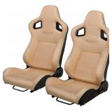 PEXMOR 2 Pcs Reclinable Universal Racing Bucket Seats w/Dual Slider, PU & Carbon Leather Adjustable Race Seats for Cars, Driver and Passenger Side, 21.5" W X 21.5" D X 38"H (Creamy White)