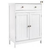 Bathroom Floor Cabinet, Freestanding Storage Cabinet Organizer Unit with Drawer and 2 Doors Cupboard, White