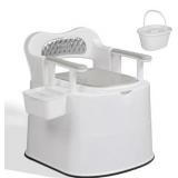 VINGLI Portable Toilet with Back & Handrail & Inner Bucket