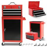 5-Drawers Red Tool Chest, 2-in-1 Mechanic Rolling Tool Box Removable Lockable Tool Storage Cabinet, Metal Tool Cart with Drawers and Wheels for Garage, Workshop Red