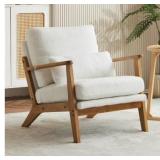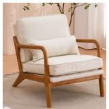 Mid Century Modern Accent Chair, Linen Fabric Armchair, High Back Single Sofa with Solid Wood Frame Beige